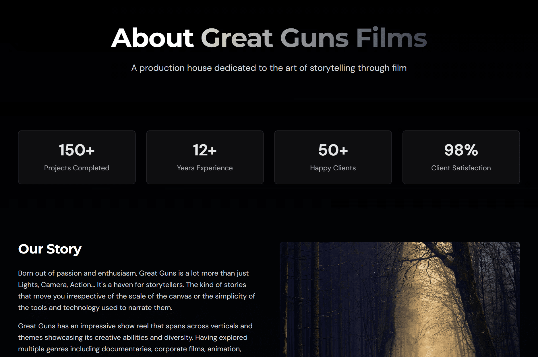 Our remodeling project not only updated Great Guns Films website for today but also set a strong foundation for future scalability and growth.